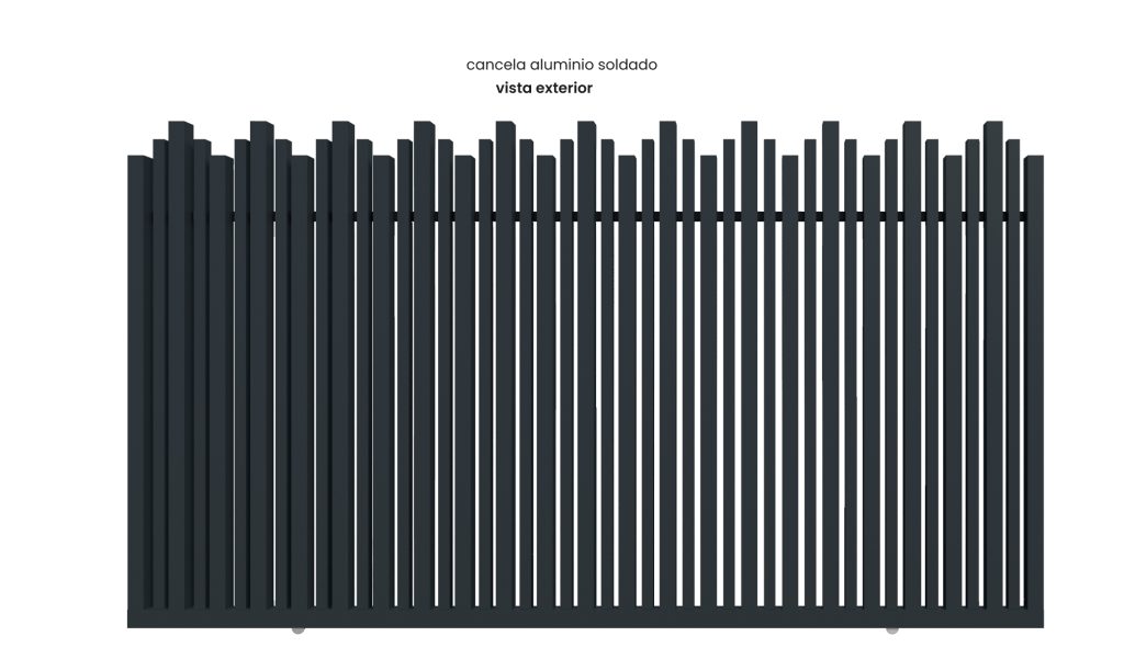 Uno de los diseños más representativos de la marca, su terminación escalonada hace que sea una cancela perfecta para viviendas de diseño de gran estilo. Se compone de perfiles tubulares desiguales en posición vertical, los cuales permiten la visibilidad desde el exterior