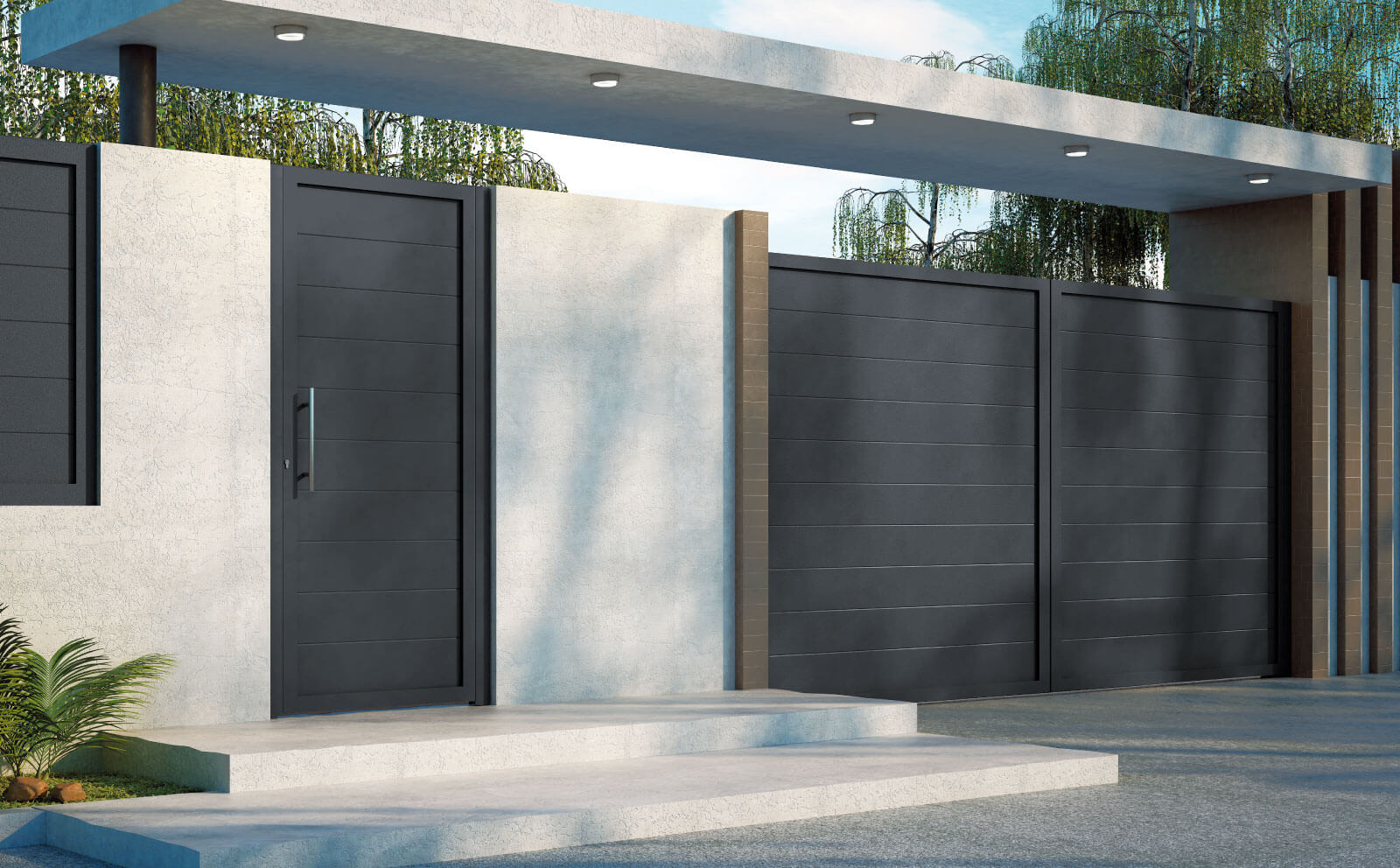 *Modelo adaptable a todo el tipo de fachadas de viviendas unifamiliaries modernas y contemporáneas. Este modelo se puede fabricar en cualquier color RAL.